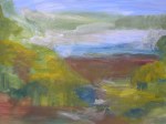 Tsunami Misschien ziet het er iets te vrolijk uit, maar het gaat om de kracht en beweging. Begonnen is met een vriendelijk landschap, maar toen gebeurde er iets …. Hieronder staan de verschillende stadia van het schilderij. Gerelateerd