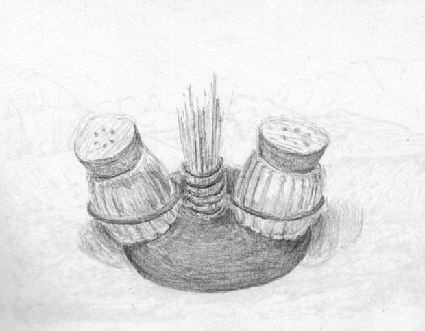 Peper en zout Als je in een berghut zit en het regent hevig, ga je maar wat tekenen in afwachting op mooier weer. Gerelateerd