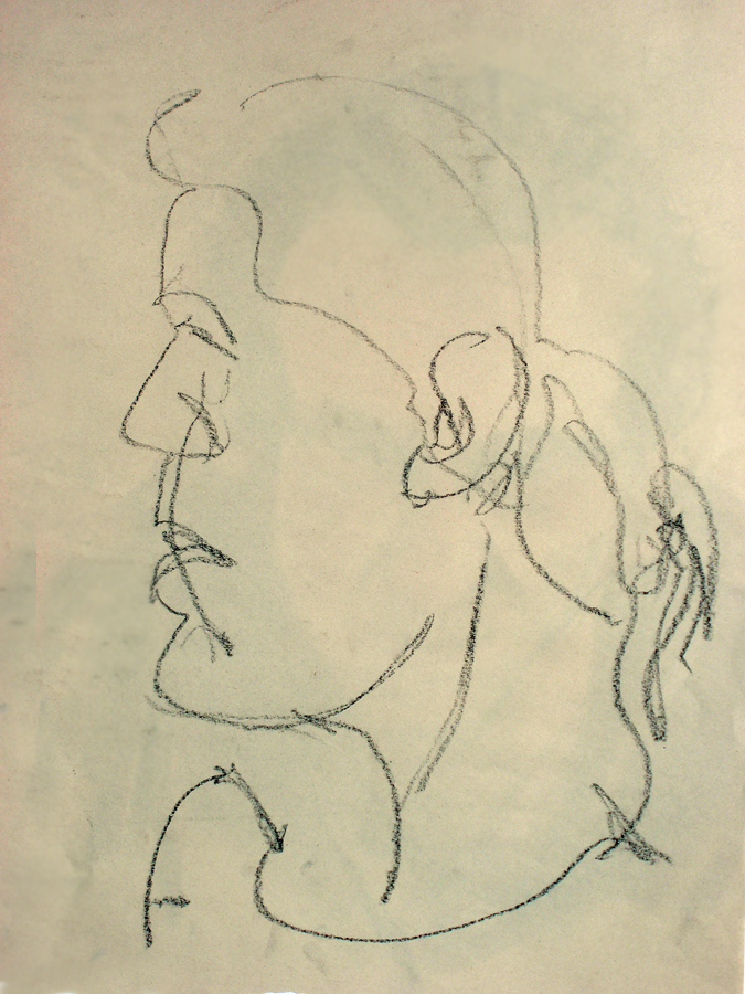 Daniël (1 van 4) Dit is het resultaat als je het houtskoolstaafje niet van het papier haalt en niet naar het papier kijkt. Gerelateerd