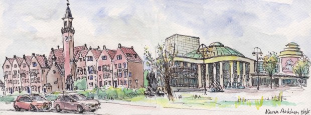 Op de tekening staan het Circustheater en de Lourdeskerk