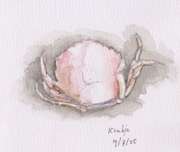 Krabje op het strand Getekenend bij Locmariaquer (Bretagne) Dit delen: Klik om te delen op Facebook (Opent in een nieuw venster) Facebook Klik om te delen op X (Opent in een nieuw venster) X Vind-ik-leuk Aan het laden...