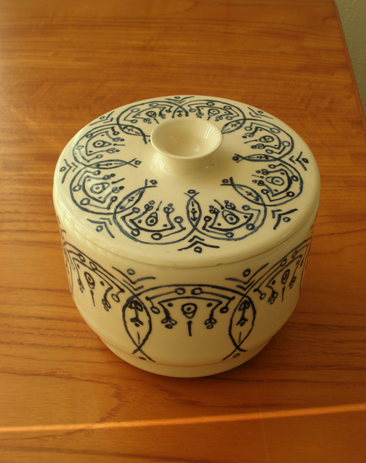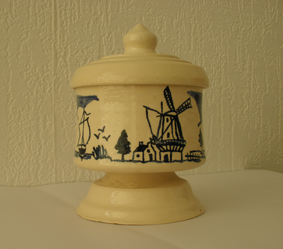 Lang geleden heb ik les van Piet van Dijken gehad in pottenbakken. Behalve met draaien ben ik ook bezig geweest met de decoratie van het aardewerk. Een vak apart. Hieronder vind je: