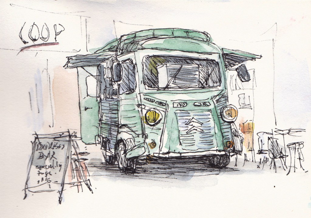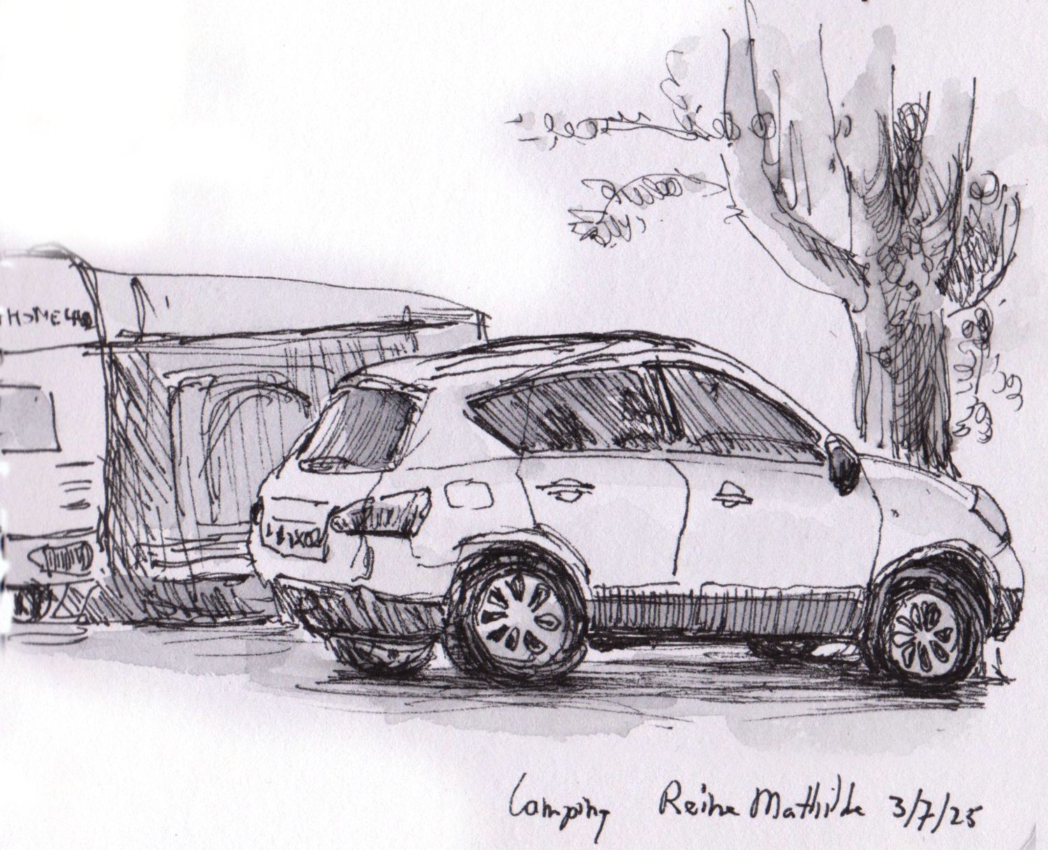 Auto’s Auto’s zijn lastig om goed strak te tekenen. Tijdens campingvakanties zijn ze echter vaak voorhanden. Campers zijn een dankbaar onderwerp. In de loop der tijd ben ik er steeds behendiger in geworden.