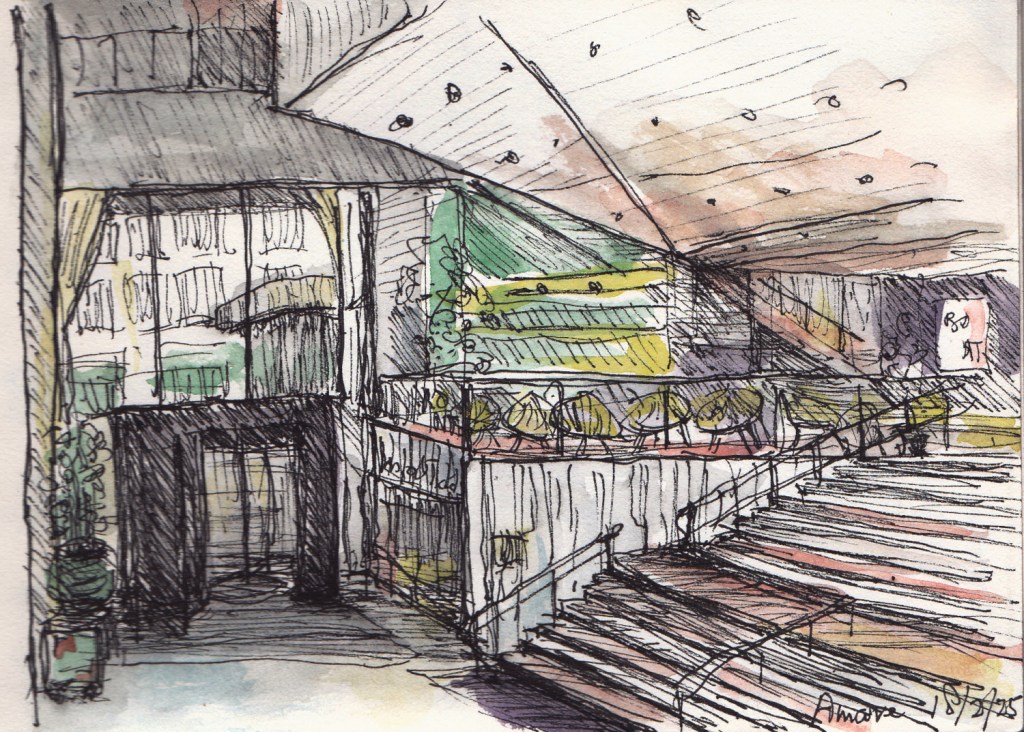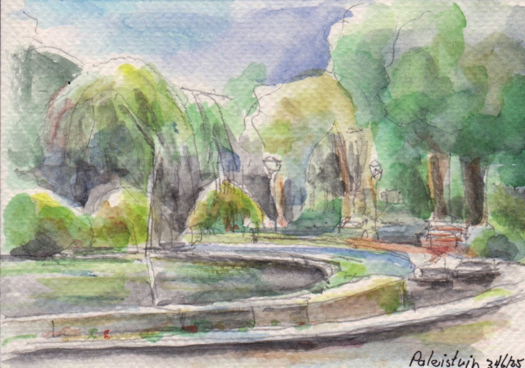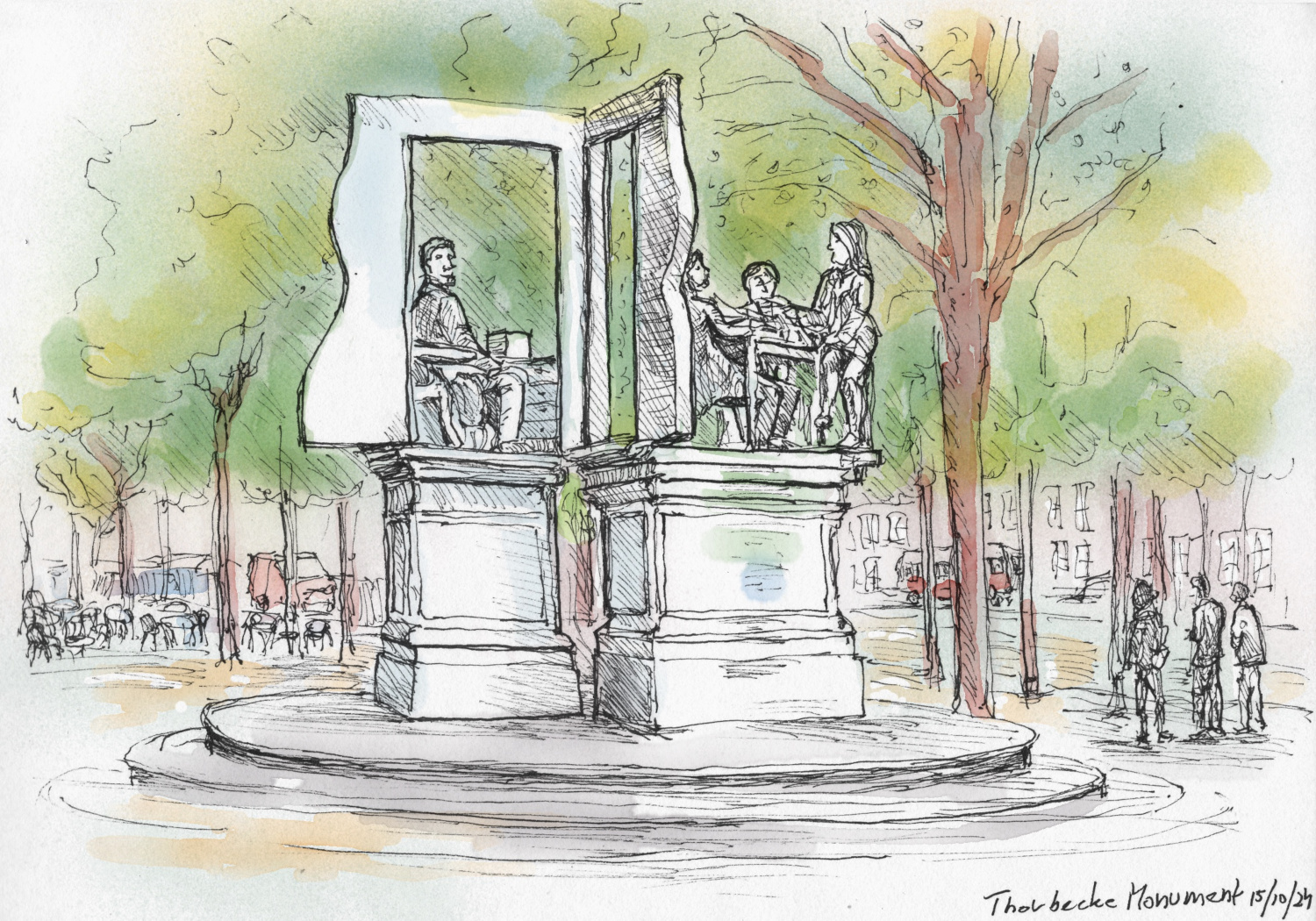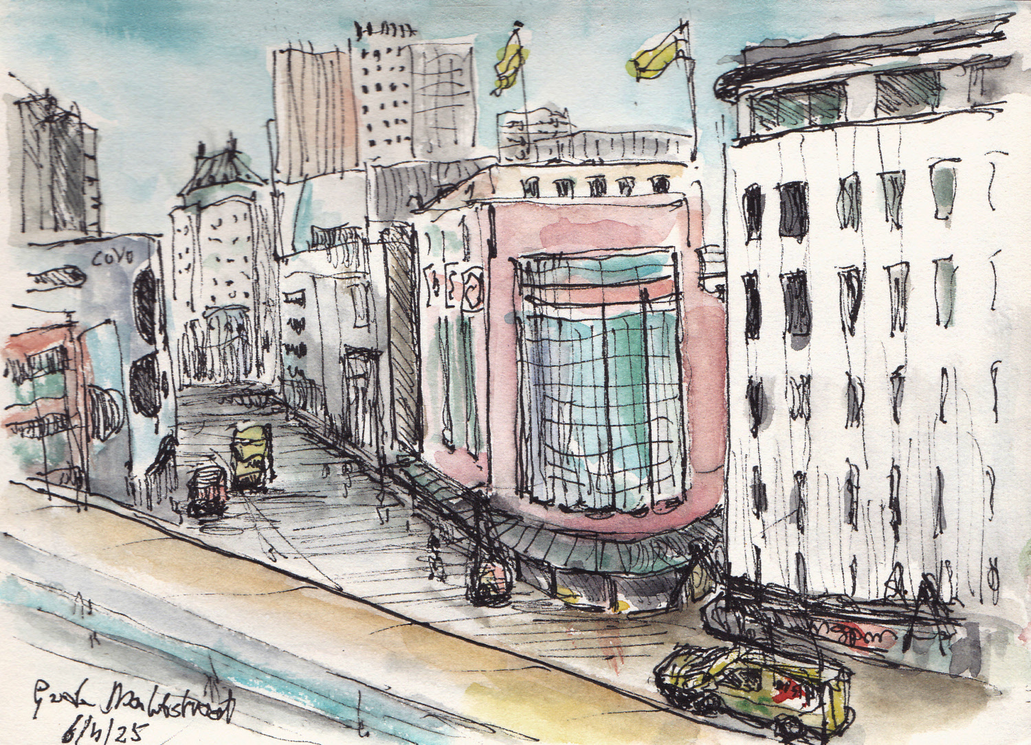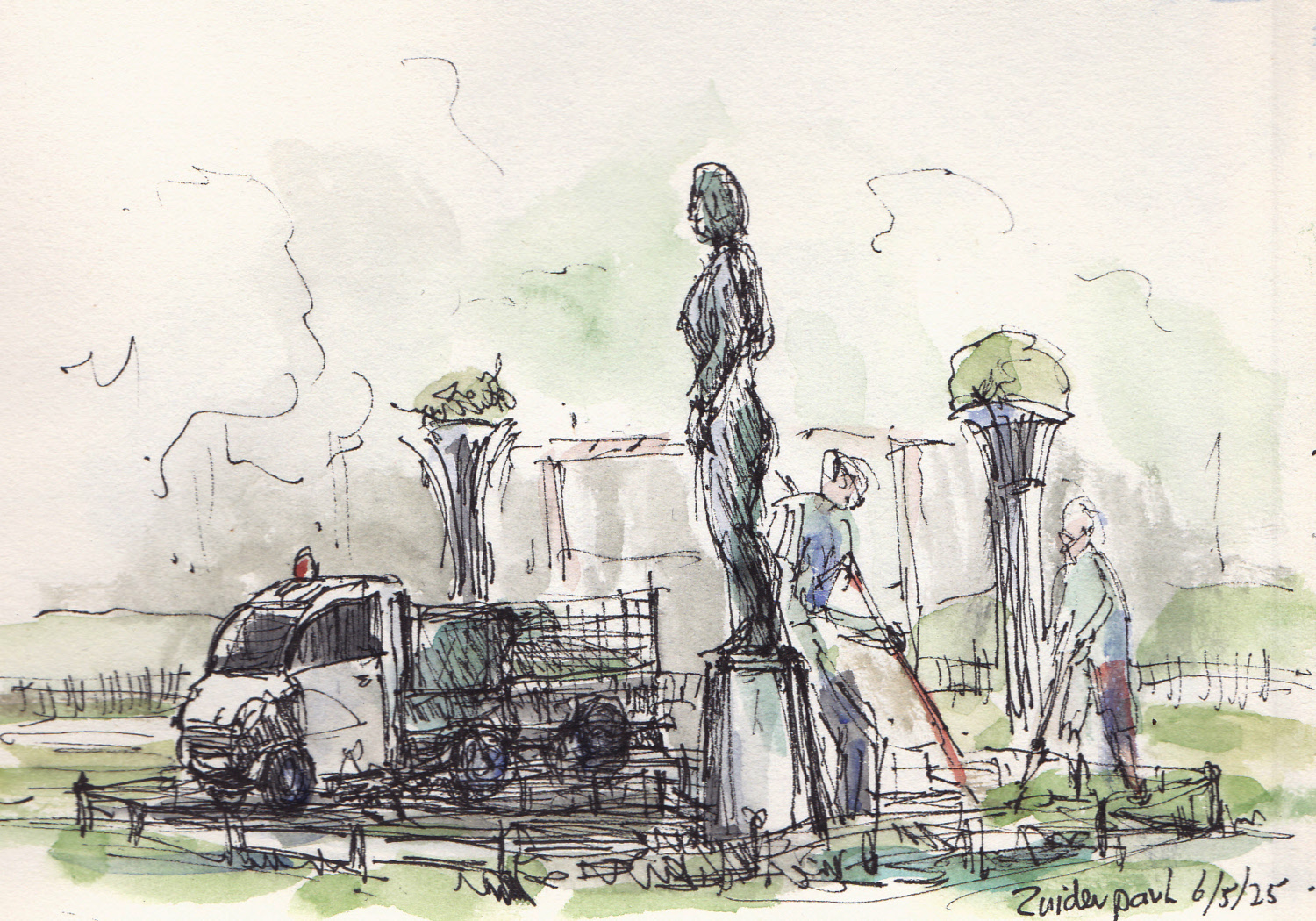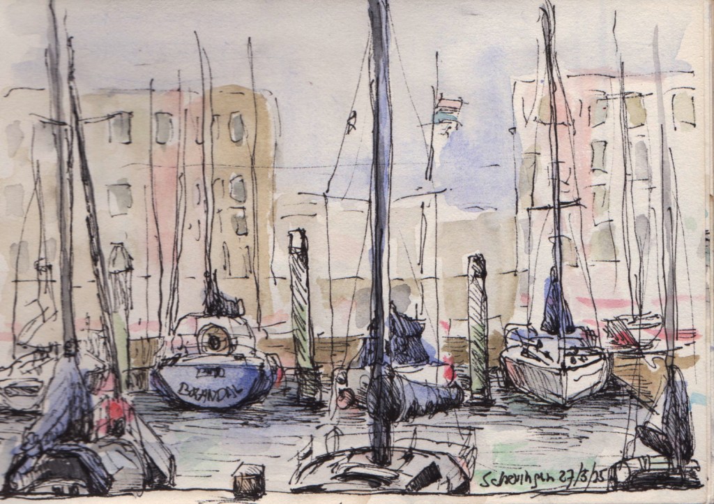pen en aquarel Met onderstaande serie tekeningen ben ik in 2024 begonnen. Met een groepje tekenvrienden zijn we iedere dinsdagochtend op een andere locatie in Den Haag gaan tekenen.