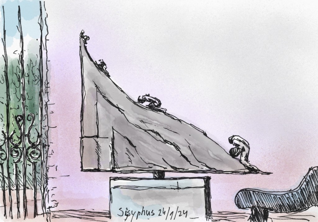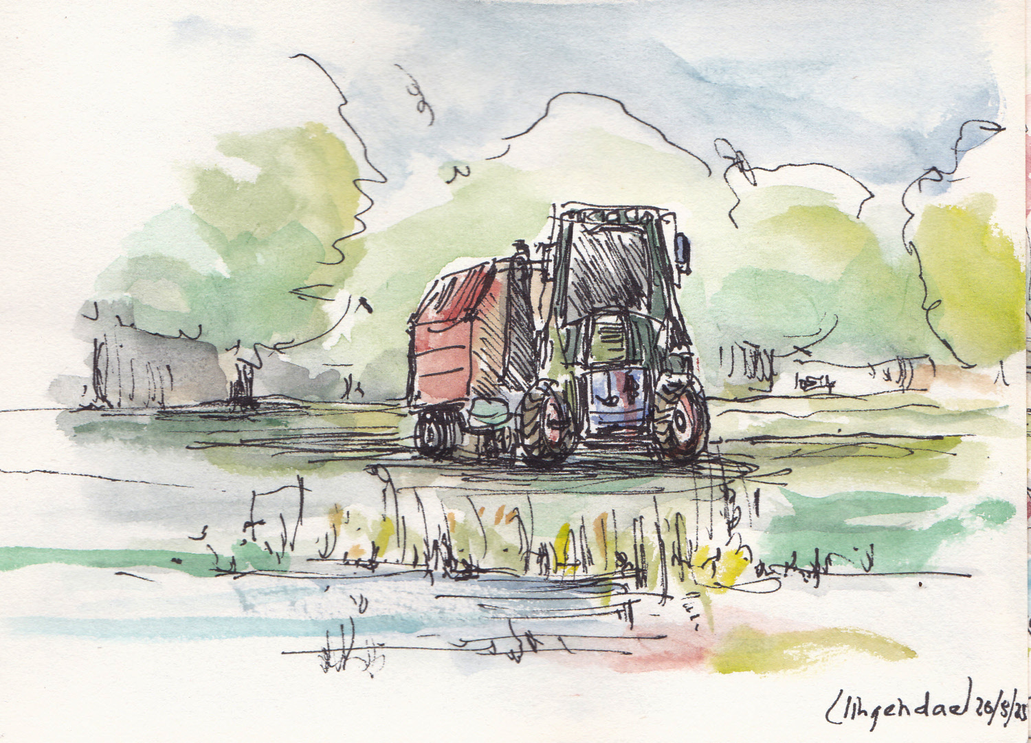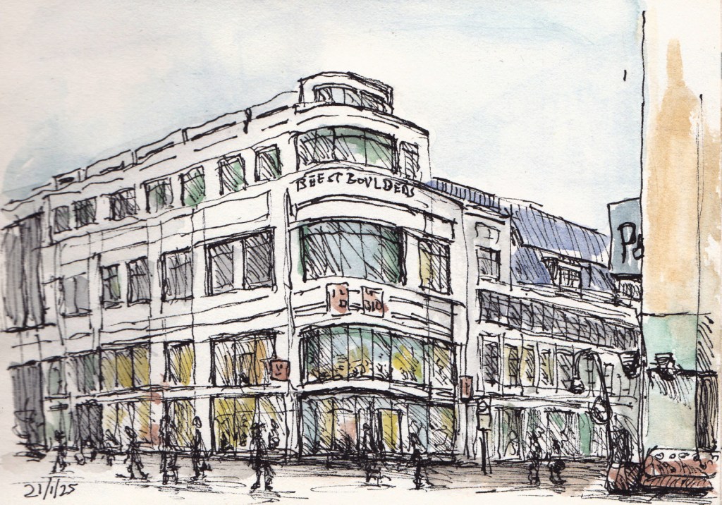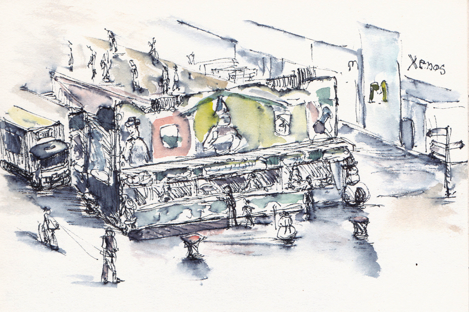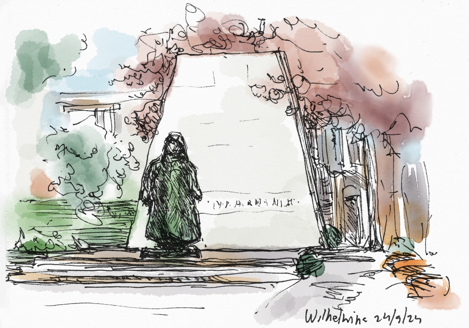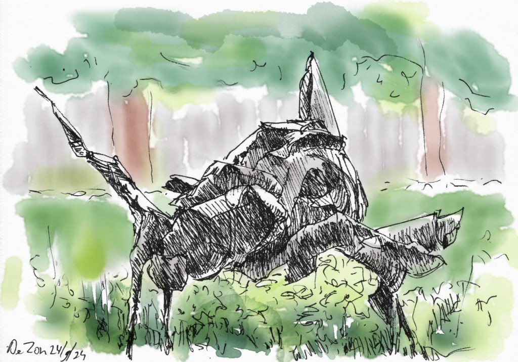 pen en aquarel Met onderstaande serie tekeningen ben ik in 2024 begonnen. Met een groepje tekenvrienden zijn we iedere dinsdagochtend op een andere locatie in Den Haag gaan tekenen.
