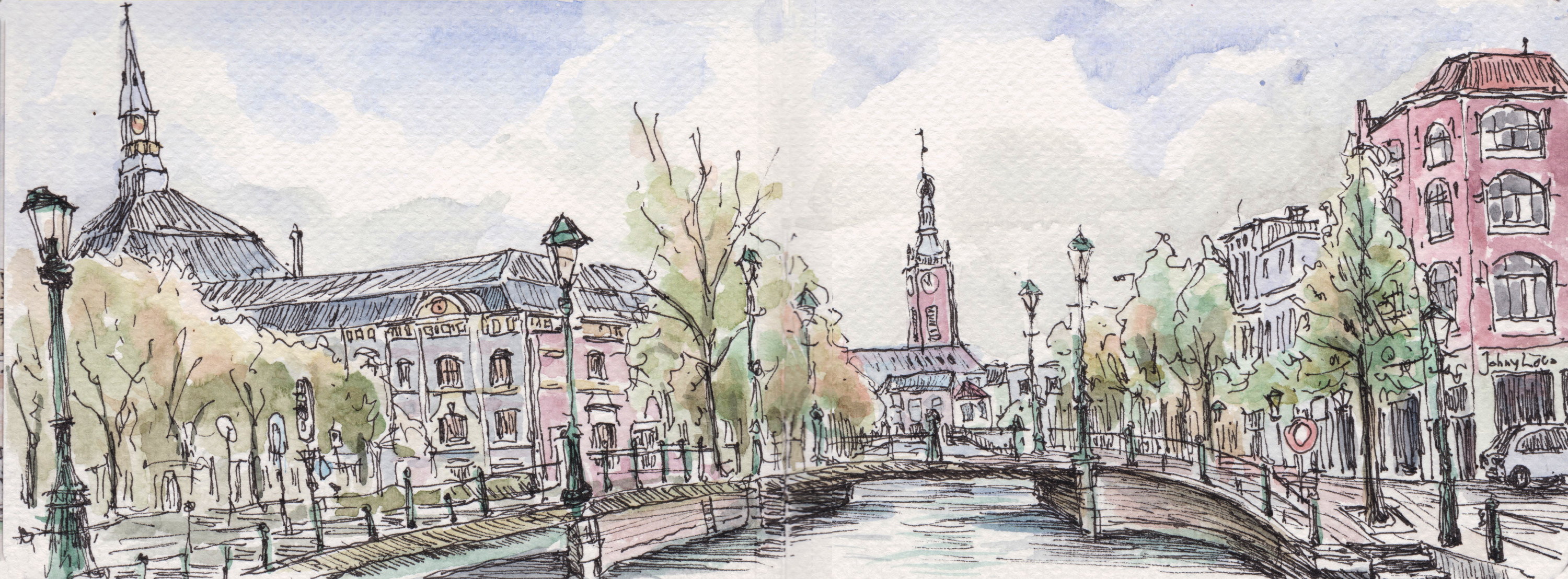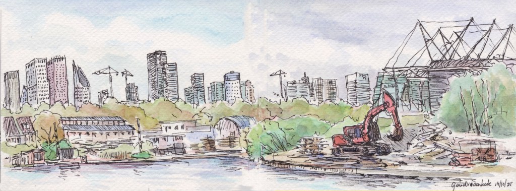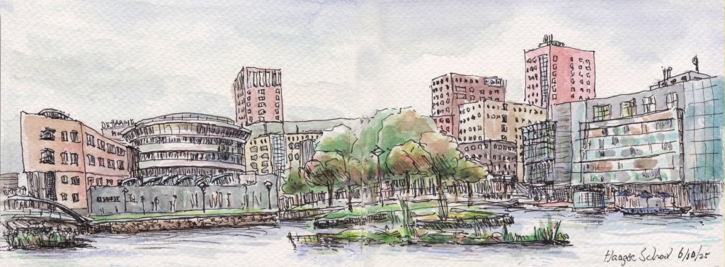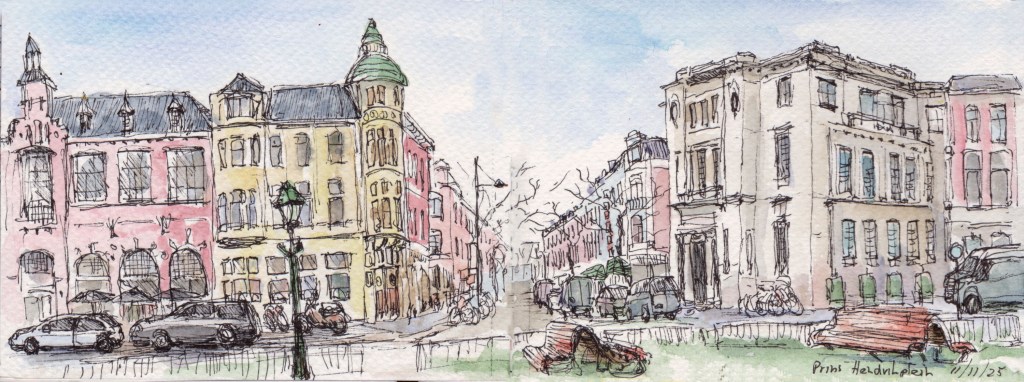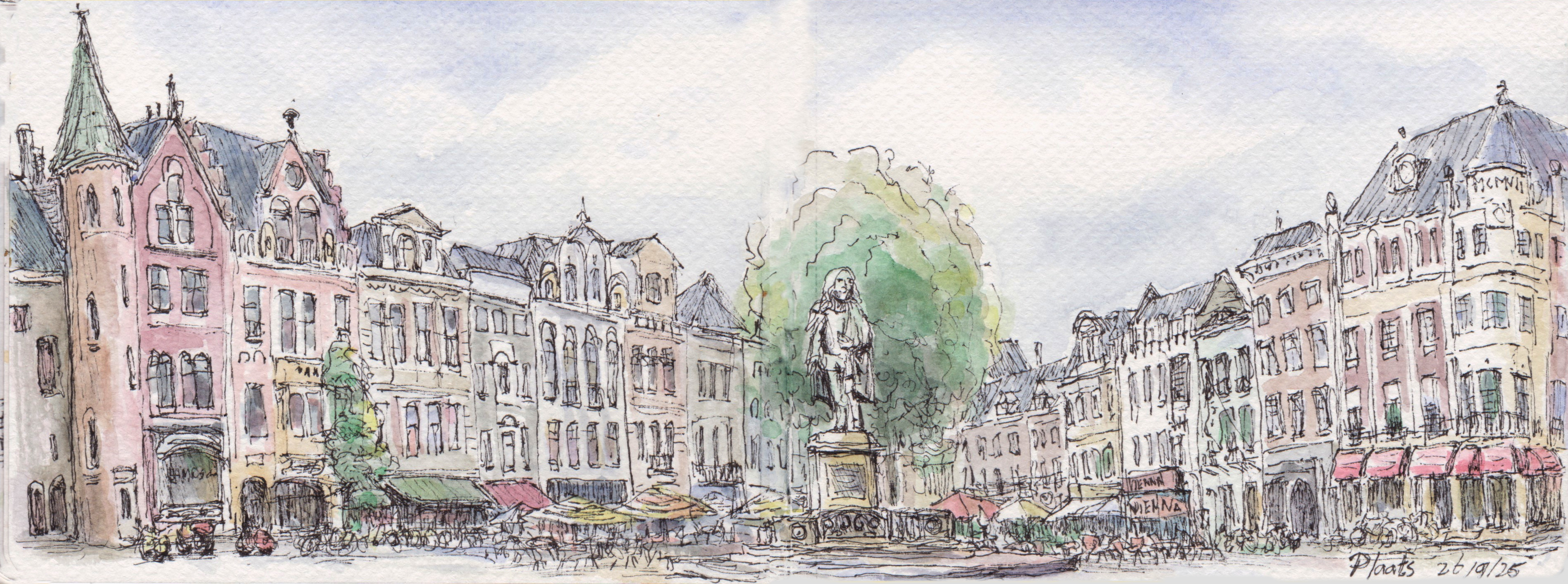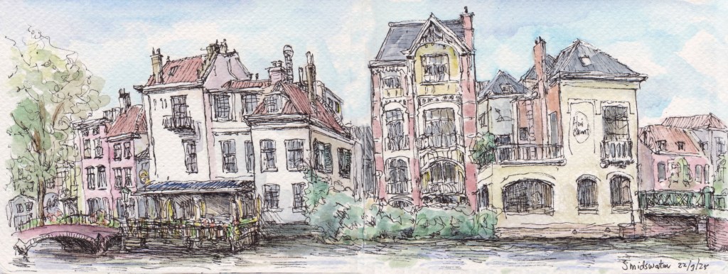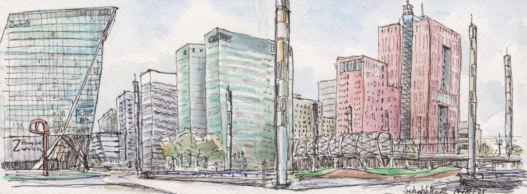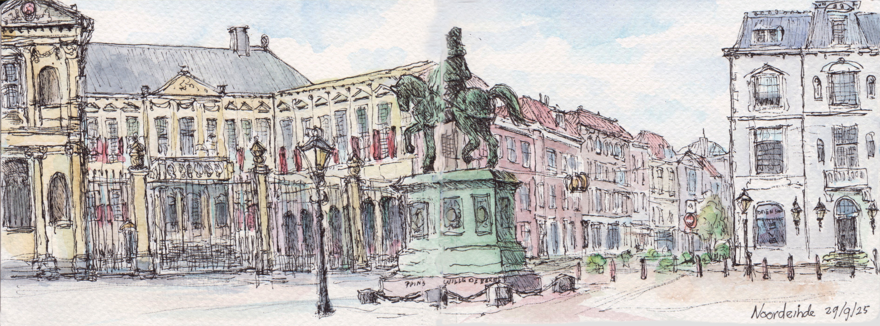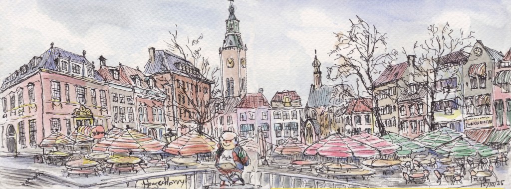 Panorama’s Onderstaande tekeningen zijn in het najaar van 2025 gemaakt in een aquarel-schetsboek op twee openslaande pagina’s van 16×12 cm, waardoor een echt ‘landscape’ formaat ontstaat.