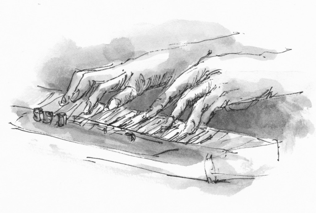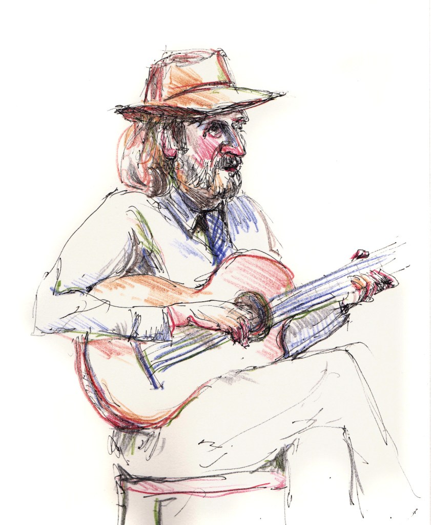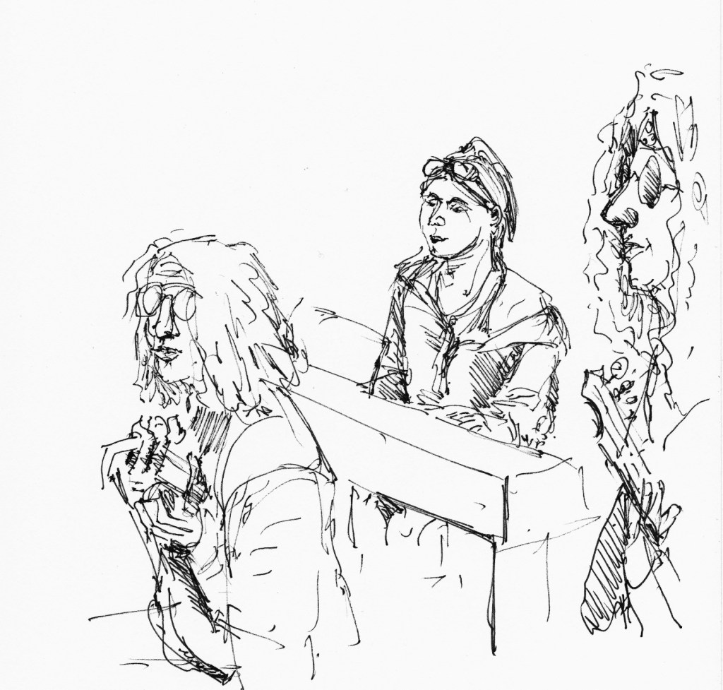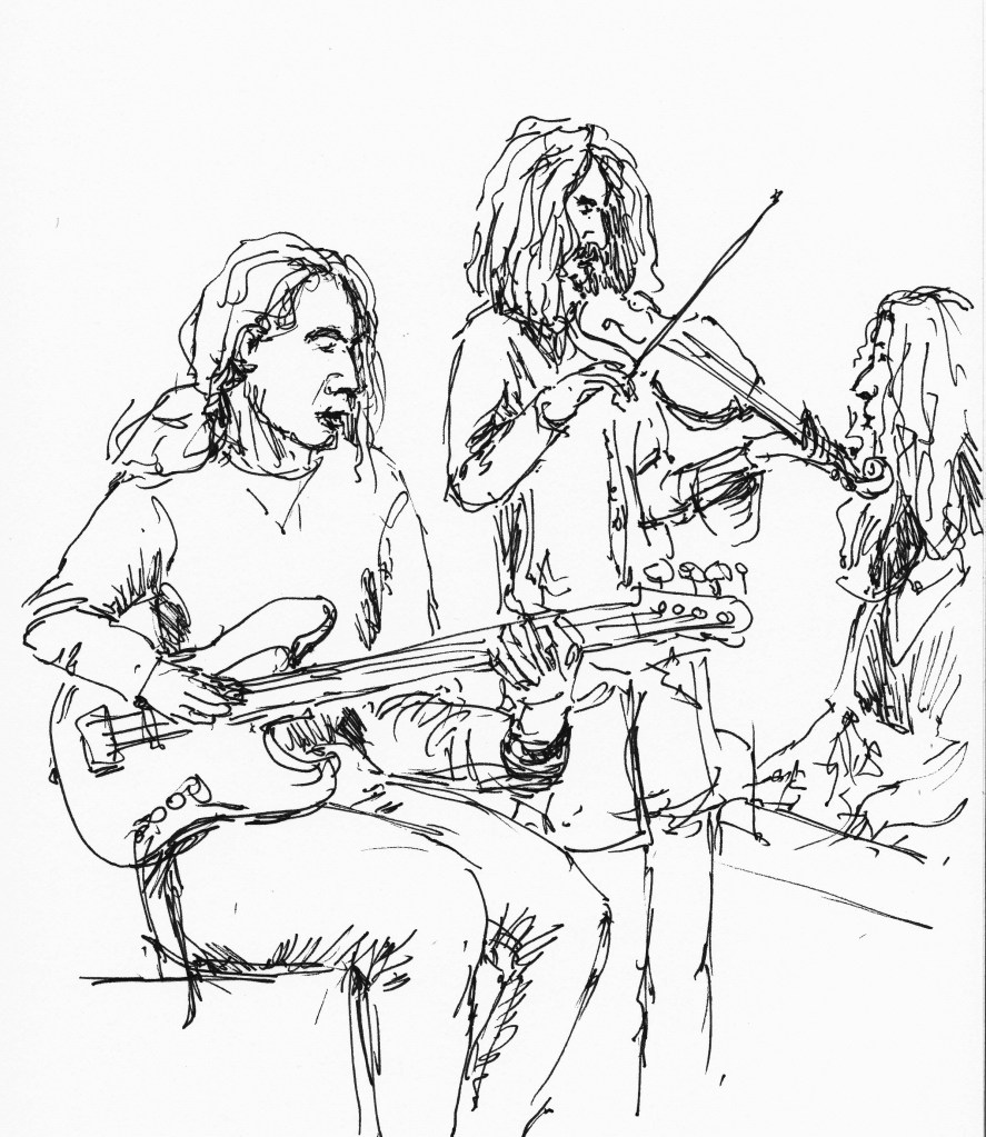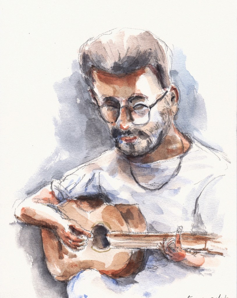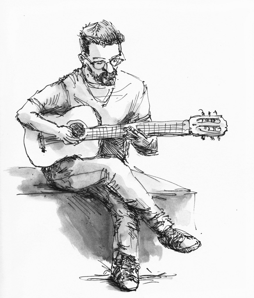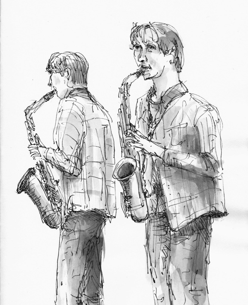 Regelmatig komt er een muzikant van het conservatorium als model. Die kan dan vrijuit spelen, ze houden geen vaste poses aan. Tekenen met live-muziek verhoogt de sfeer.