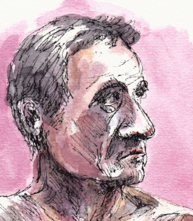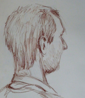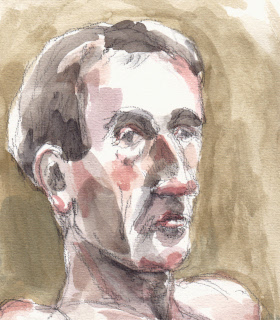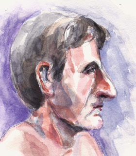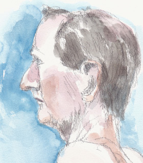 Michel is een veel gevraagd model in Den Haag omdat hij zo’n markant gezicht heeft. Hij is het model dat ik de afgelopen 10 jaar het meest heb getekend. Hij is automonteur van oldtimers, maar vindt het modellenwerk leuk om daarnaast te doen. Hij kan extreem goed stilstaan en – zitten, wat erg plezierig is voor het tekenen en schilderen. Hieronder vind je de ‘pasfoto’ van al die tekeningen. Ze zijn niet allemaal even gedetailleerd omdat ik bij de ‘modellen’ minder tijd en ruimte heb gehad om het gezicht uit te werken.