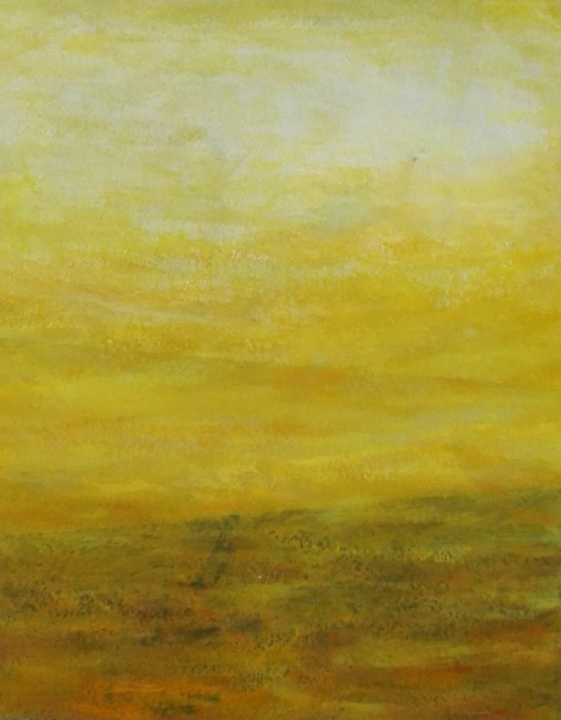 De opdracht bij Buitenkunst was een landschap te schilderen, dat 10 minuten te laten drogen en dan met zwart af te dekken. En dat 4x. zie hier het proces. Alle kleuren worden donkerder. De dag verandert in de nacht.