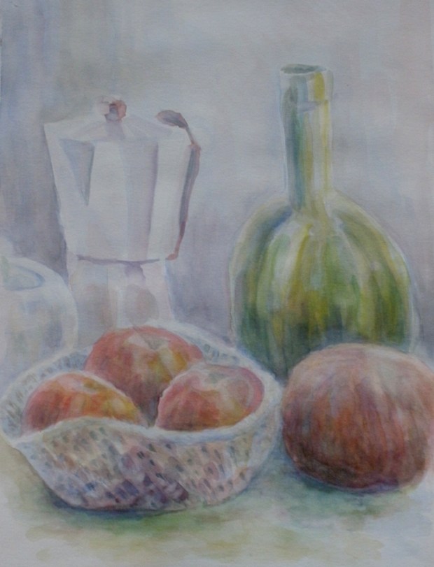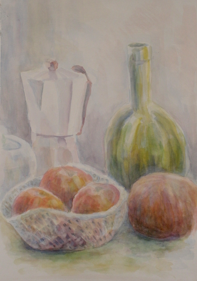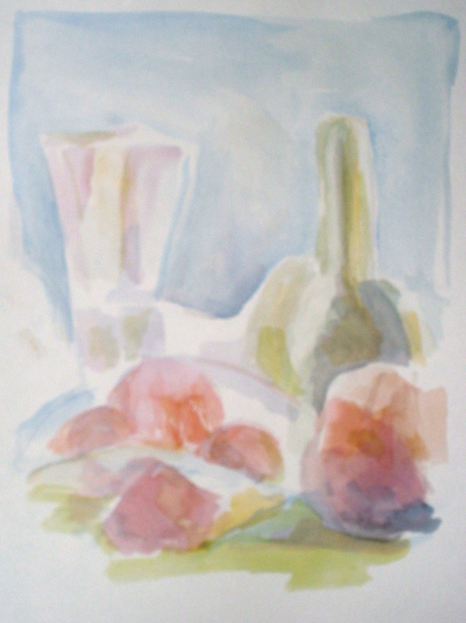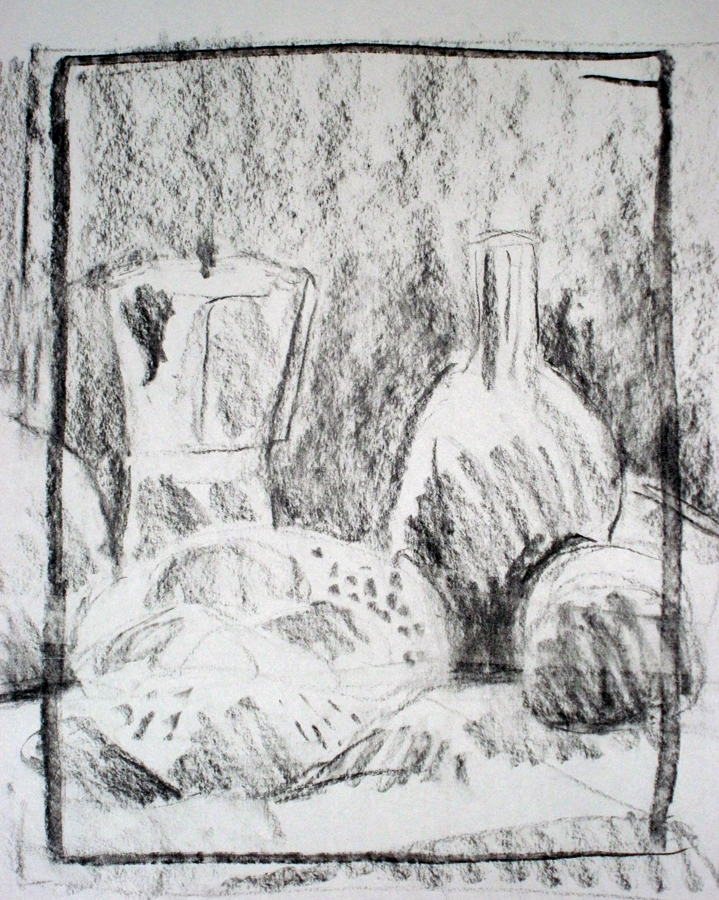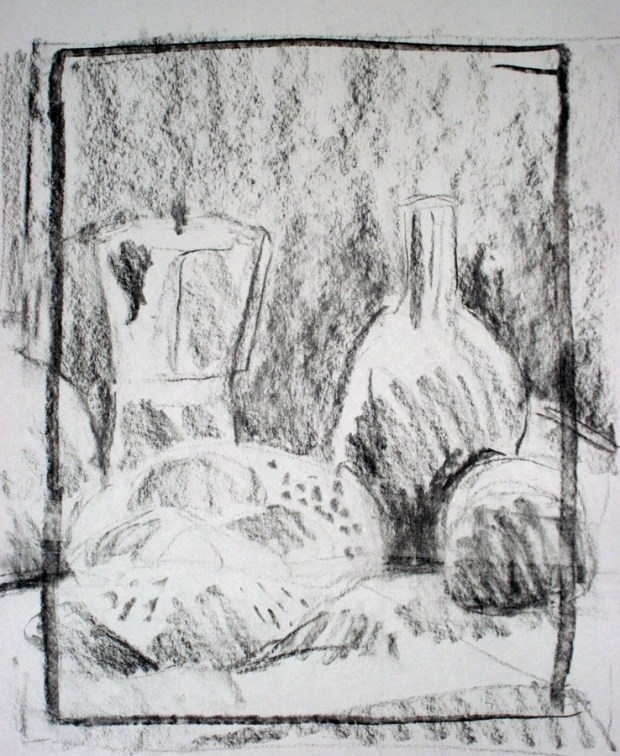 In december heb ik een workshop aquarelleren gedaan bij Adelbert Foppe en Jan Reinhardt. Als voorstudie heb ik eerst onderstaande houtskoolschets en (snelle) aquarel gemaakt .