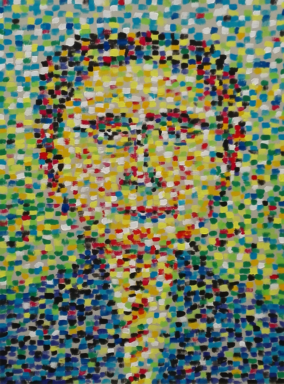 De opdracht bij Buitenkunst was om tegelijkertijd te werken aan een schilderij van overvloed en een van spaarzaamheid. Dit is de versie van spaarzaamheid.
