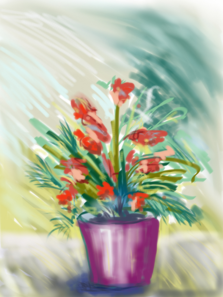 Een poging om met de Ipad op schoot een snelle schets van een BNN’er op tv te maken.